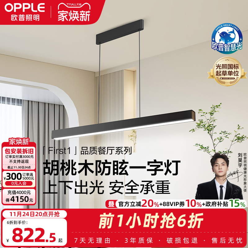 欧普/First1/全光谱护眼一字长条餐吊灯高显色智慧光智能读灯具CD