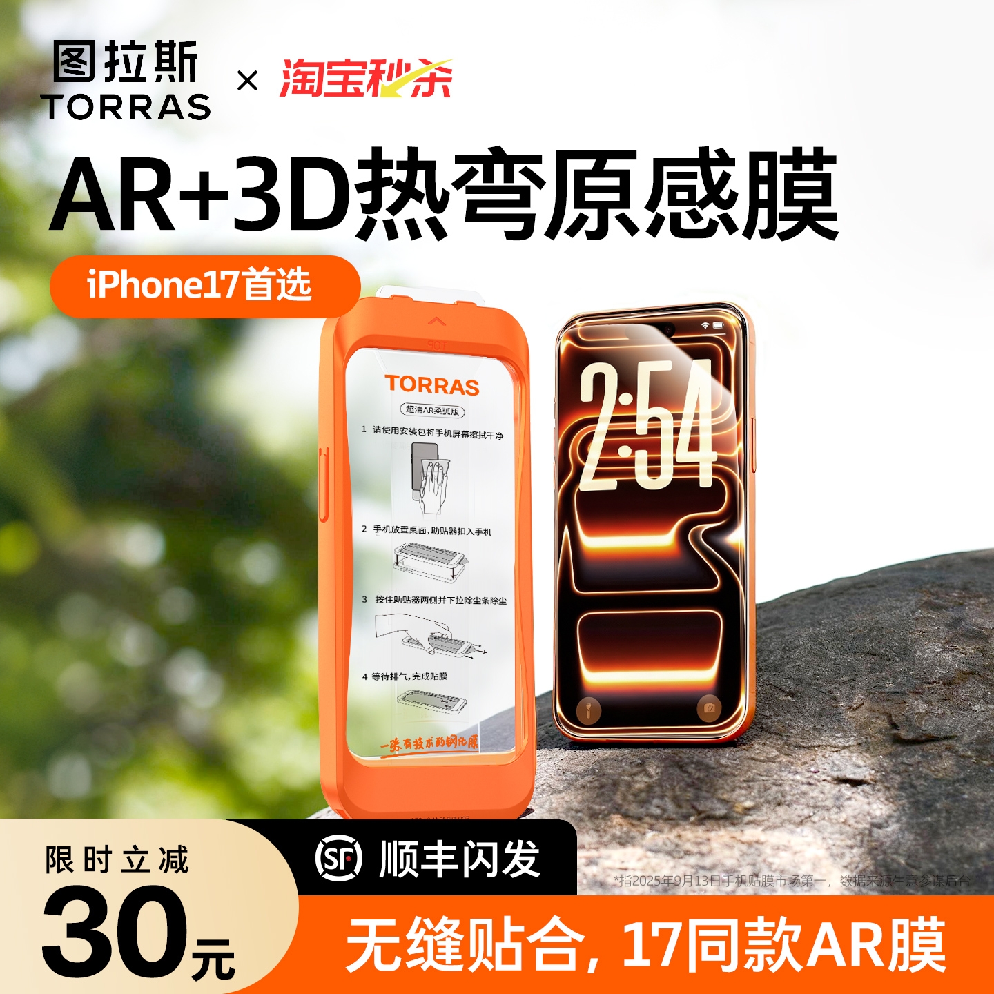 图拉斯原感膜AR增透抗反射适用苹果17ProMax钢化膜手机iPhone16保护+15官14Pro新款3D热弯全覆盖14屏幕贴膜pm