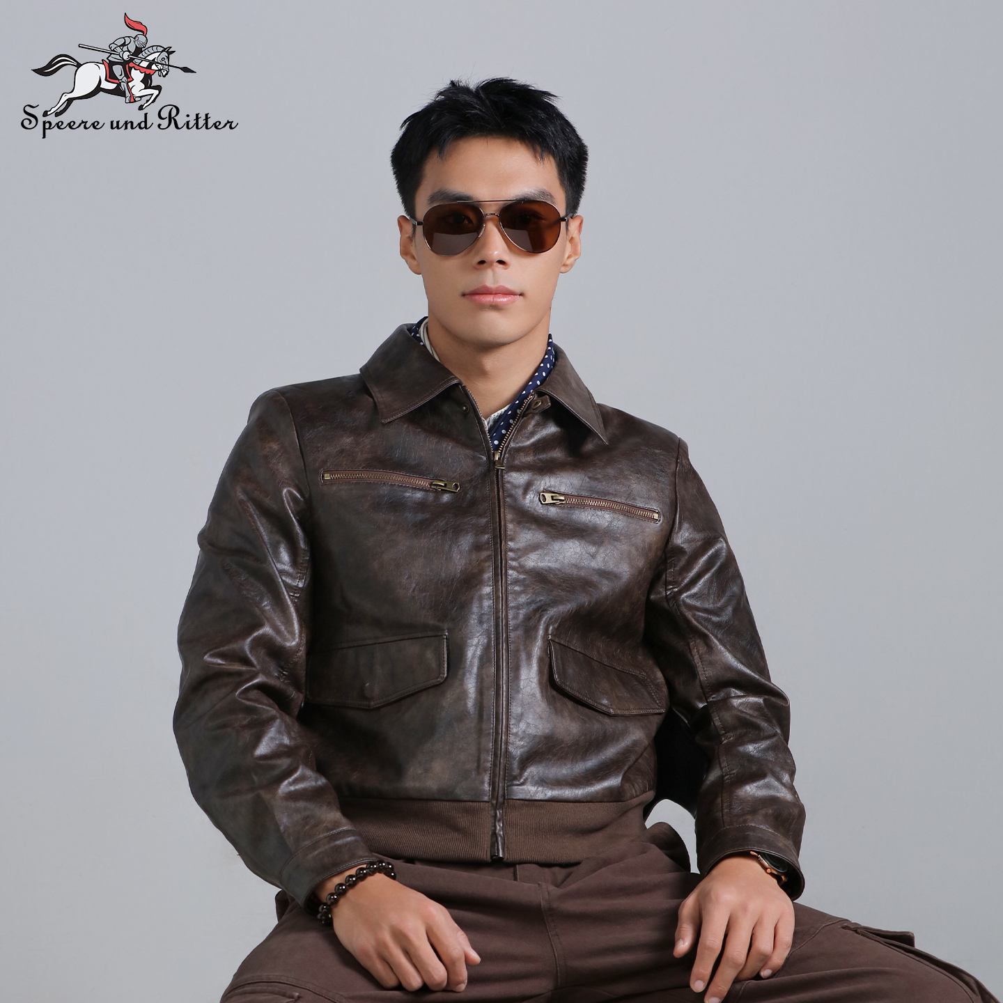Vintage男女BF109哈特曼王牌飞行员复古秋冬翻领休闲皮衣外套夹克