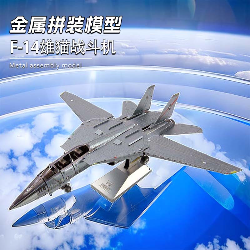 爱拼DIY拼装模型3D立体铁艺全金属拼图飞机高难度 F-14雄猫战斗机