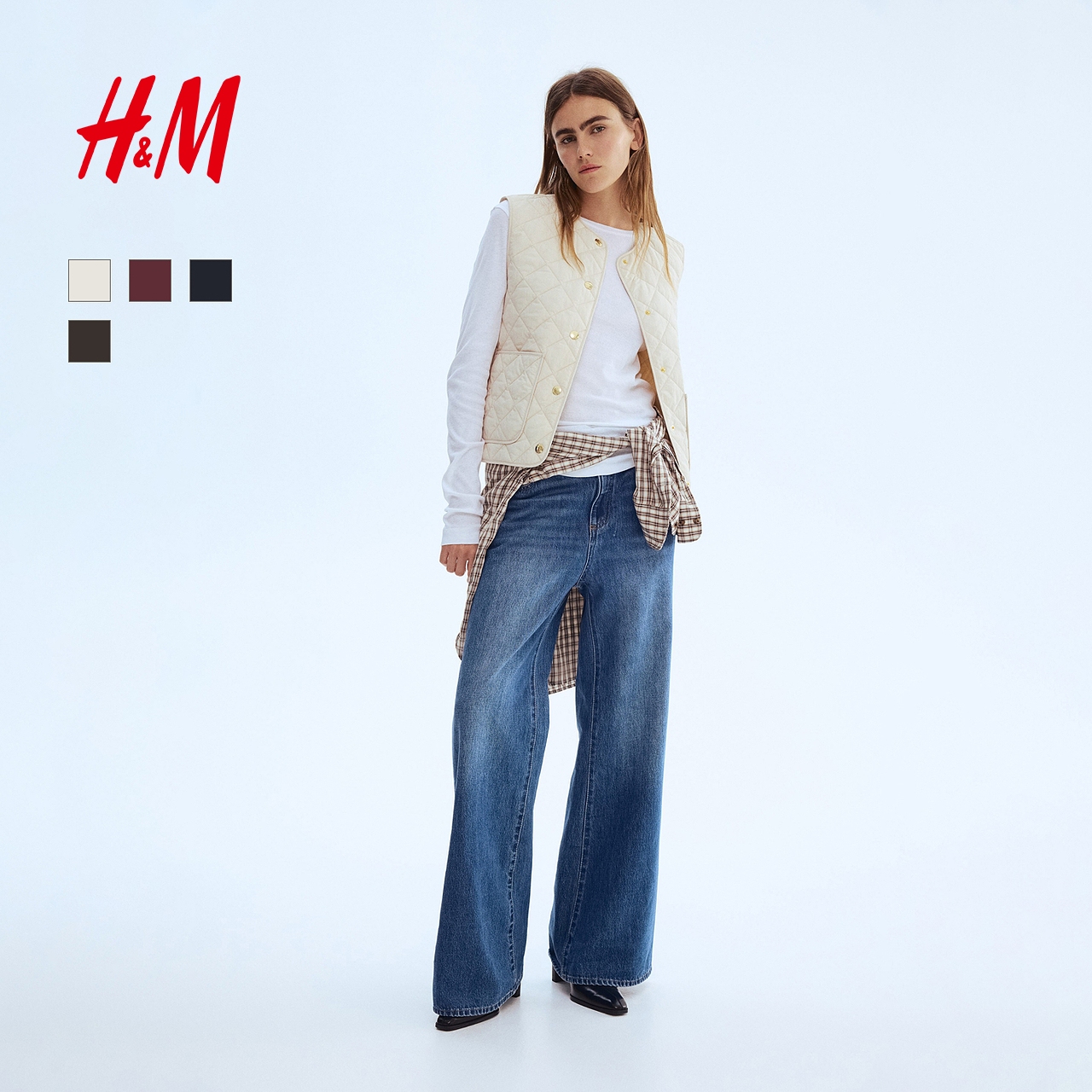 HM女装马夹2025秋季新款圆领轻薄内搭酒红色绗缝马甲背心1284955
