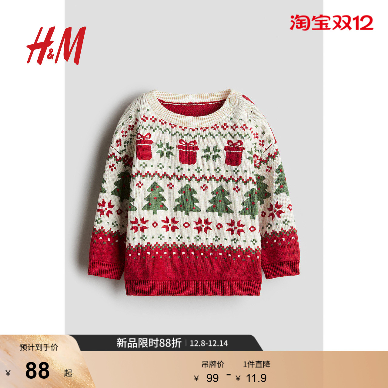 HM童装男婴女婴红色毛衣冬季圣诞圆领印花洋气套头针织衫1264687