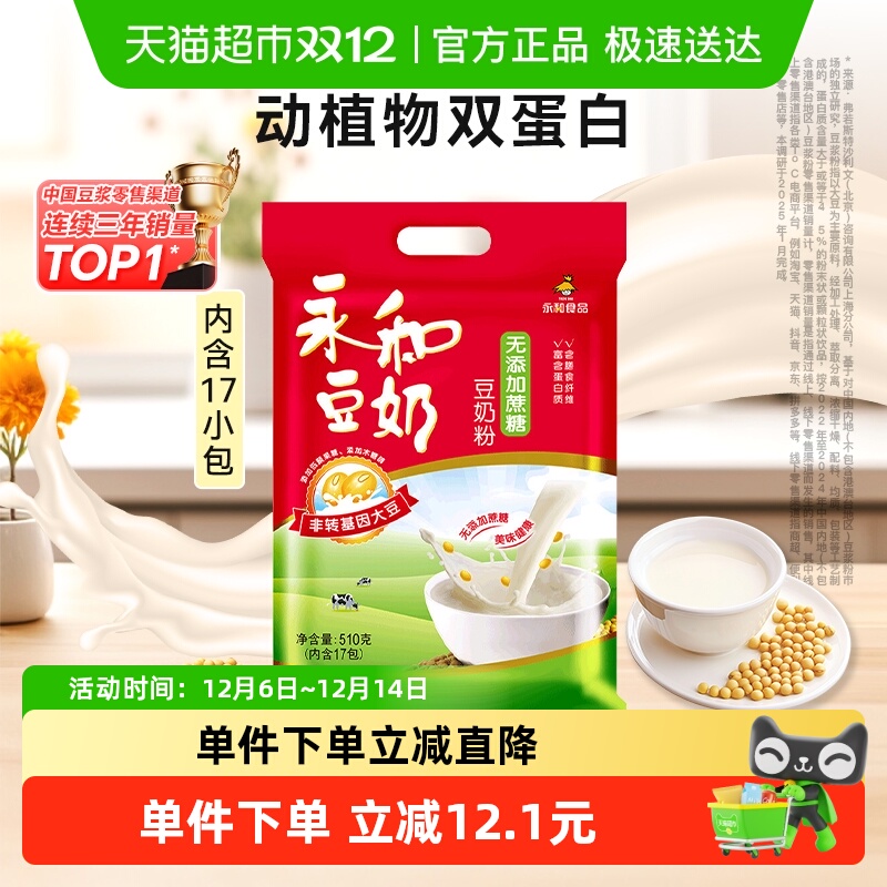 Yon Ho/永和豆浆经典早餐冲调甜味/原味/原磨/无添加蔗糖豆浆粉