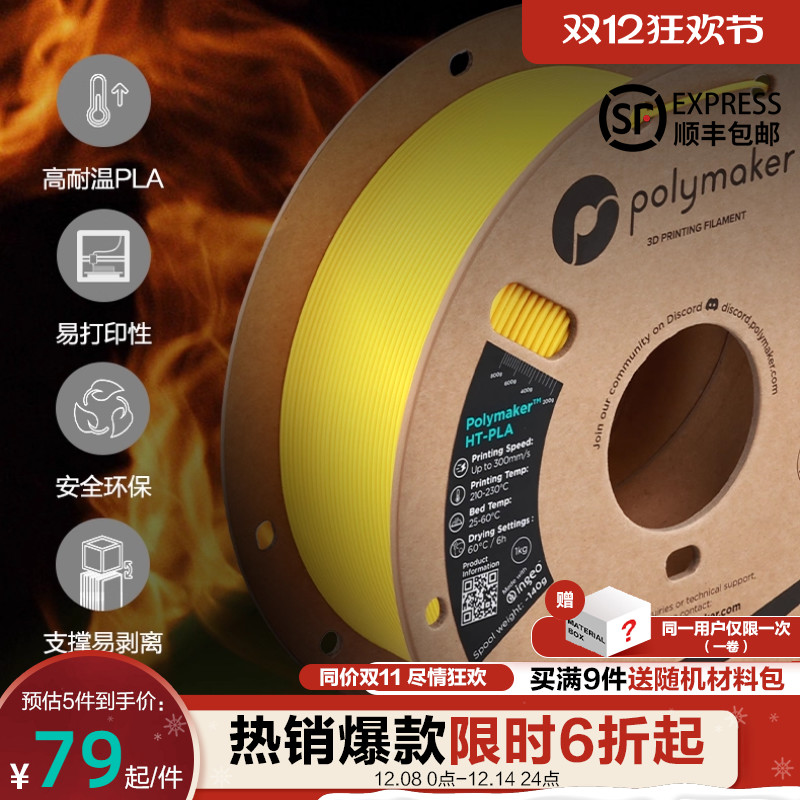 [新品] Polymaker HT-PLA 耐高温PLA HT-PLA-GF 3d打印机耗材 类ABS无需退火 高速
