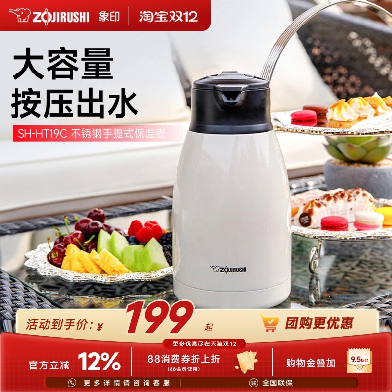 象印家用手提保温水壶HT19C大容量304不锈钢热水壶暖壶保温瓶1.9L