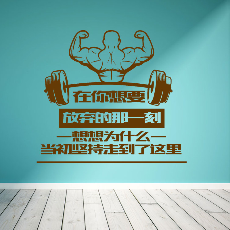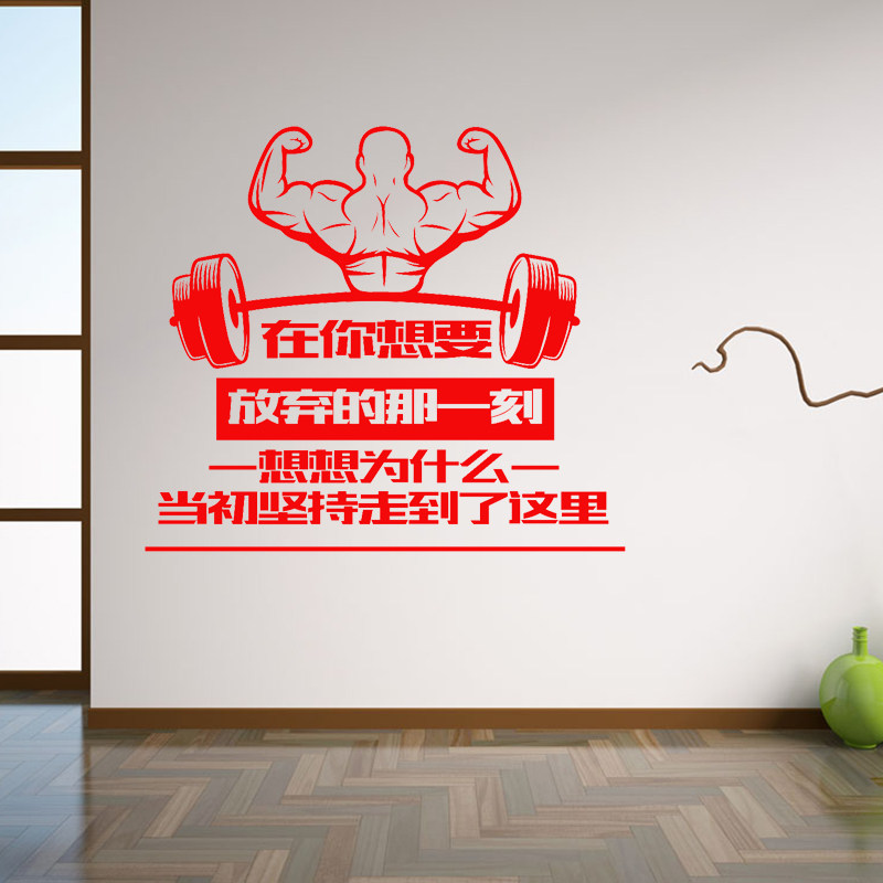 淘宝天猫健身馆墙面装饰墙贴 减肥瘦身励志短句贴纸锻炼室肌肉哑铃贴画窗优惠券折扣价格–彩云间