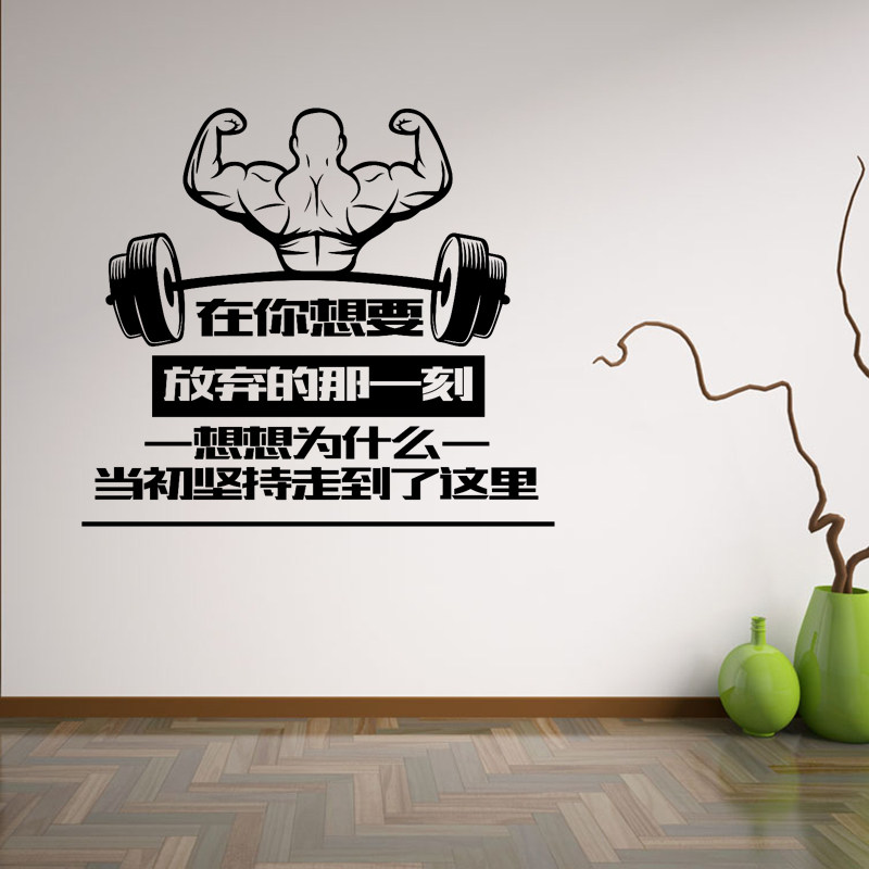 您的位置: 健身馆墙面装饰墙贴 减肥瘦身励志短句贴纸锻炼室肌肉哑铃贴画窗
