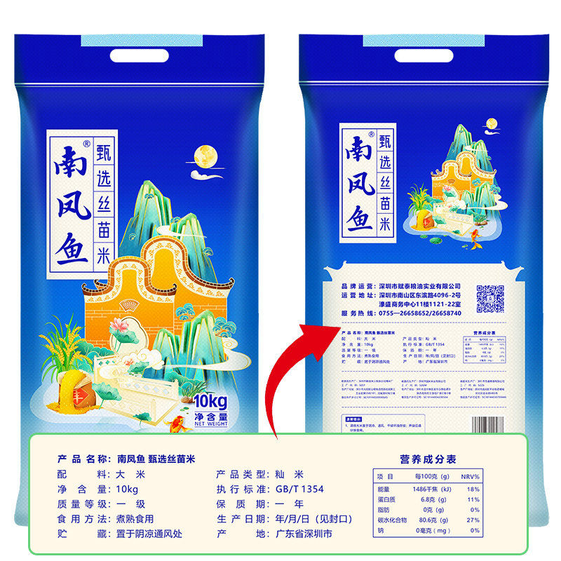 南凤鱼丝苗米10kg大米南方1级长粒洁白籼米20斤