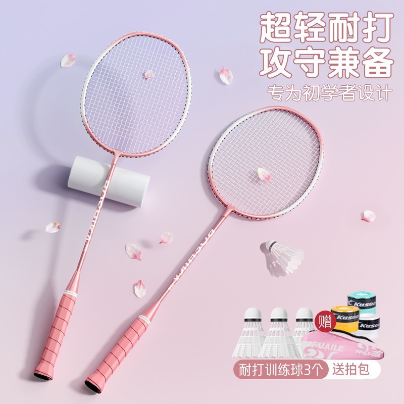 > 羽毛球拍全碳素女生儿童专业小学生超轻单双拍套装包邮