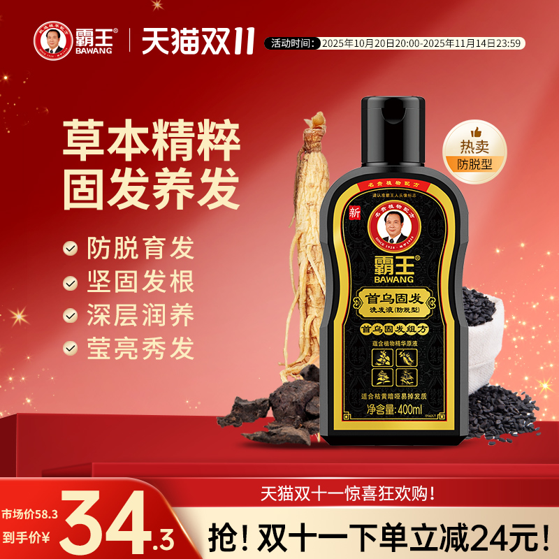 淘宝天猫霸王何首乌洗发水防脱发洗发露黑芝麻人参植物蓬松固发护理洗头膏优惠券折扣价格–彩云间
