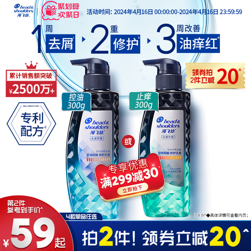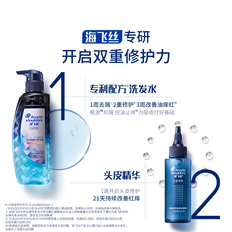 【海飞丝洗发水300ml装!,拍2件138】正品海飞丝洗发露,长效去屑,双重去屑因子深入毛孔去屑,深层去油,纳米级吸油微粒,迅速吸走头油!