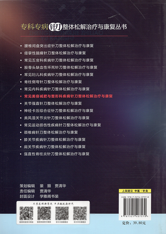 您的位置: 正版现货 常见美容减肥与整形科疾病针刀整体松解治疗与康复 专科专病针刀整体松解治疗与康复丛书 石笋 刘文 中国医药科技出版社