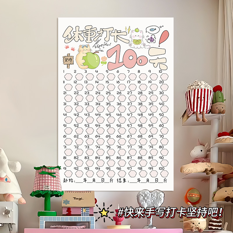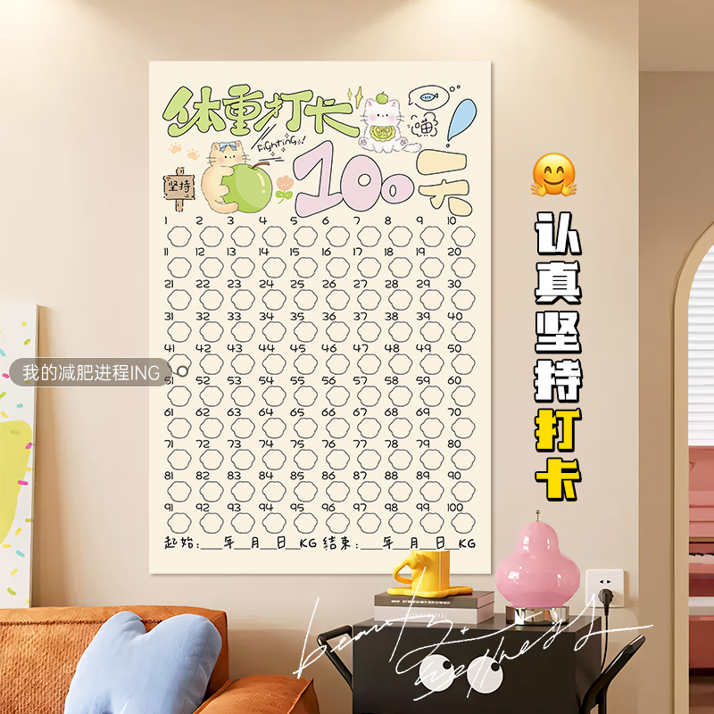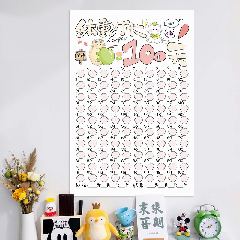 您的位置: 减肥打卡记录表100天减肥计划表墙贴瘦身时间计划激励健身贴装饰