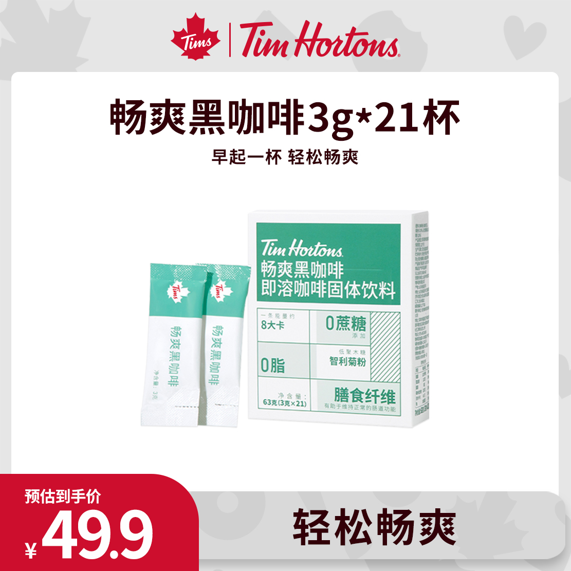 Tims清醒黑咖啡畅爽即溶咖啡2g*21包美式0蔗糖添加
