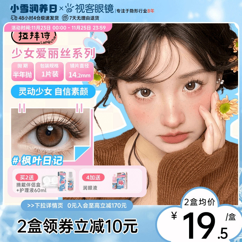 年度新品 拉拜诗美瞳半年抛少女爱丽丝1片装隐形眼镜一副赠护理液