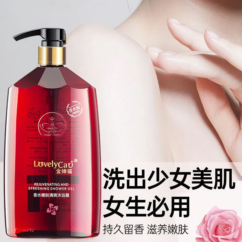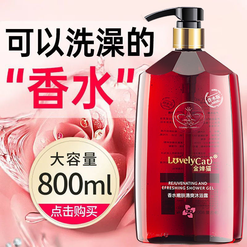 > 香水沐浴露72小时留香持久男女香体大容量除螨金婵猫