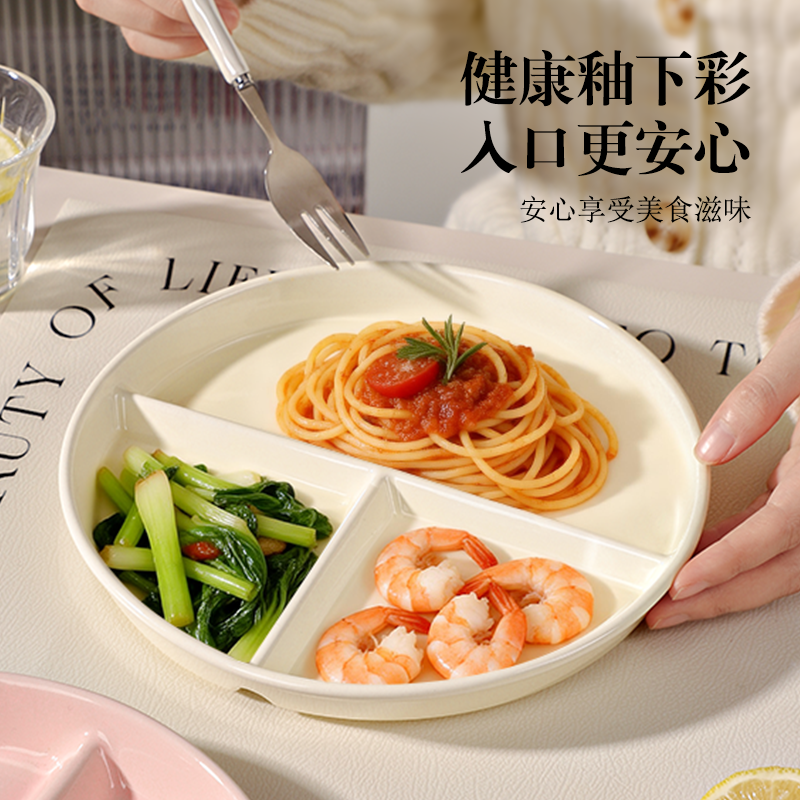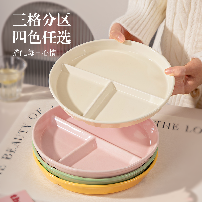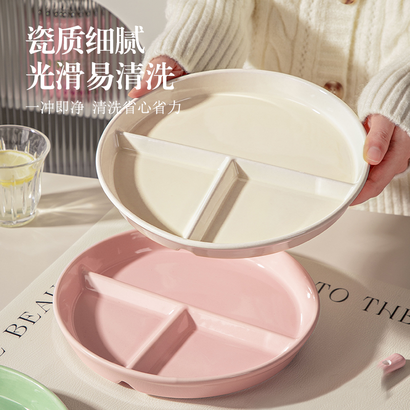 您的位置: 陶瓷211减脂分格餐盘圆形三格盘子早餐大人儿童分餐盘减肥水果盘