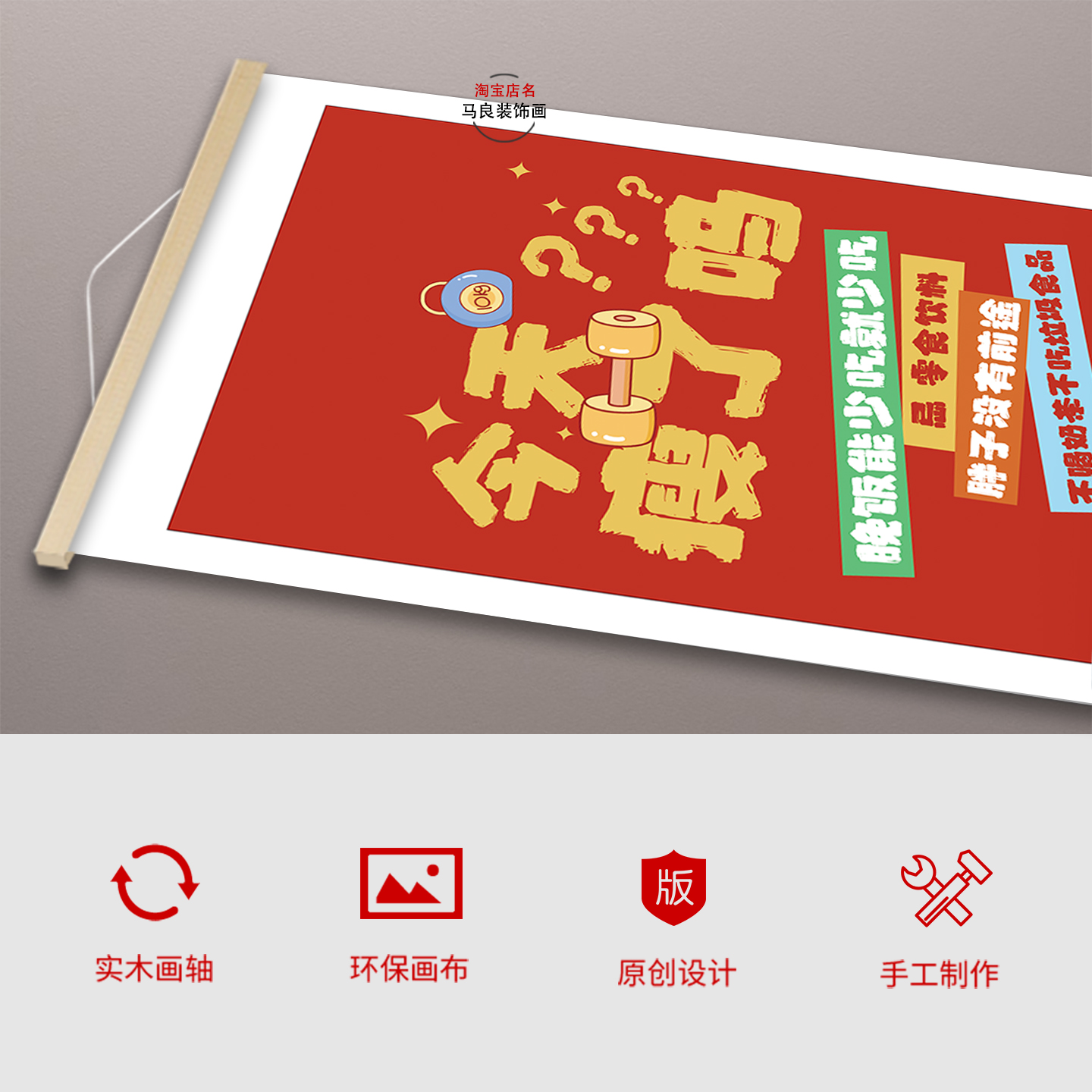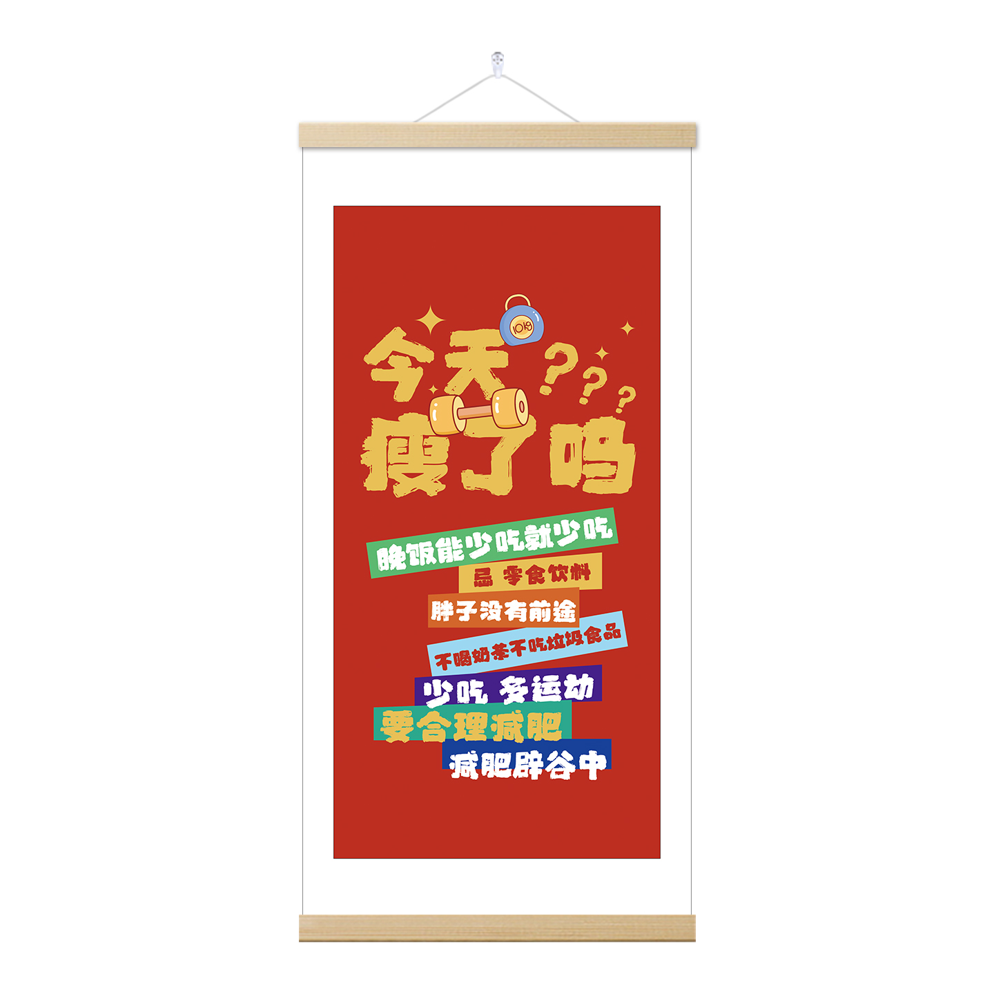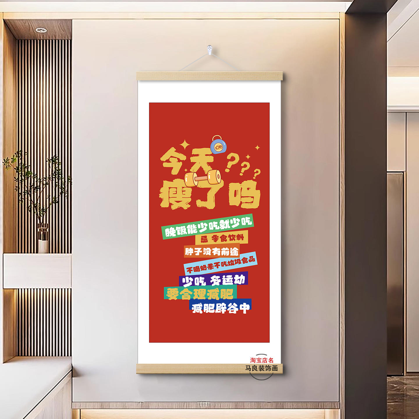 淘宝天猫减肥励志网红简约今天瘦了吗字画客厅玄关书房卧室新中式卷轴挂画优惠券折扣价格–彩云间