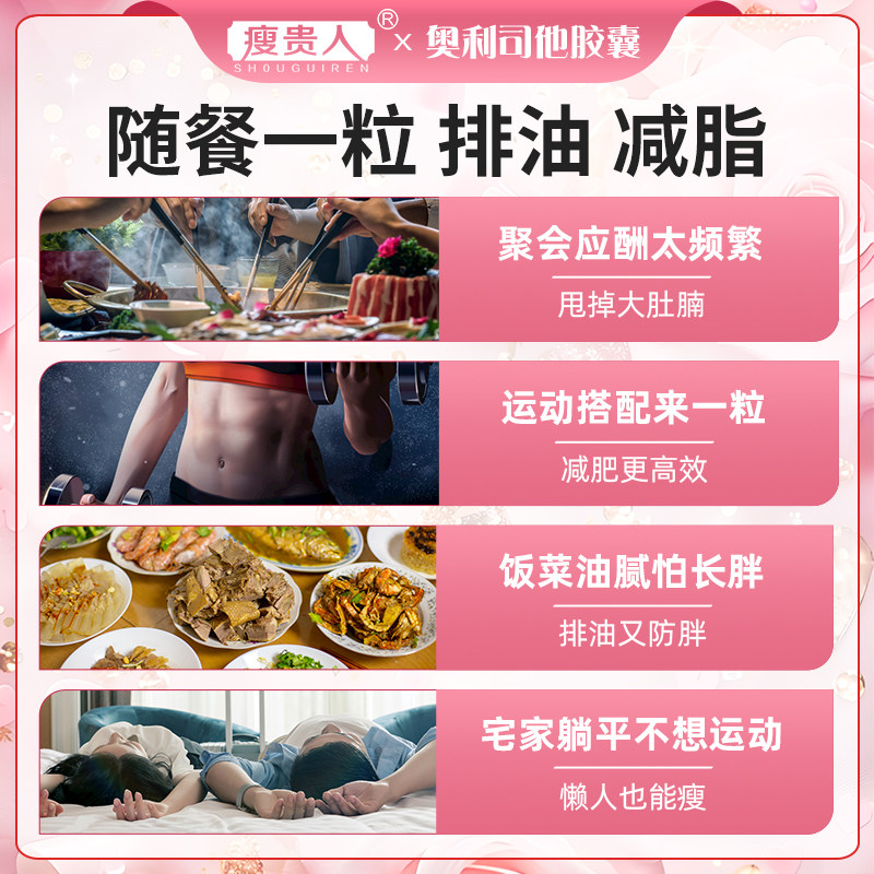 瘦贵人奥利司他胶囊减肥排油燃脂正品官方旗舰店瘦身肚子腿减脂药