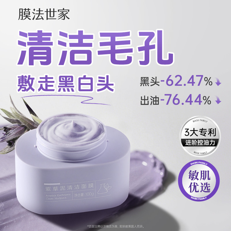 膜法世家紫草清洁泥膜改善黑头粉刺毛孔控油舒缓涂抹面膜官方正品
