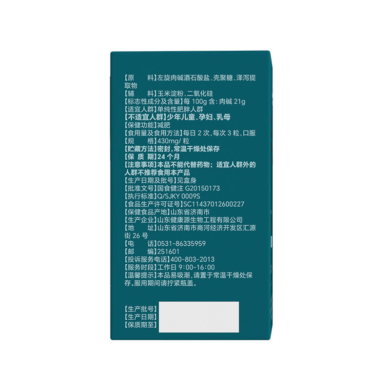 一品康左旋肉碱壳聚糖减肥瘦身益天健牌伊韵胶囊430mg/粒*45粒