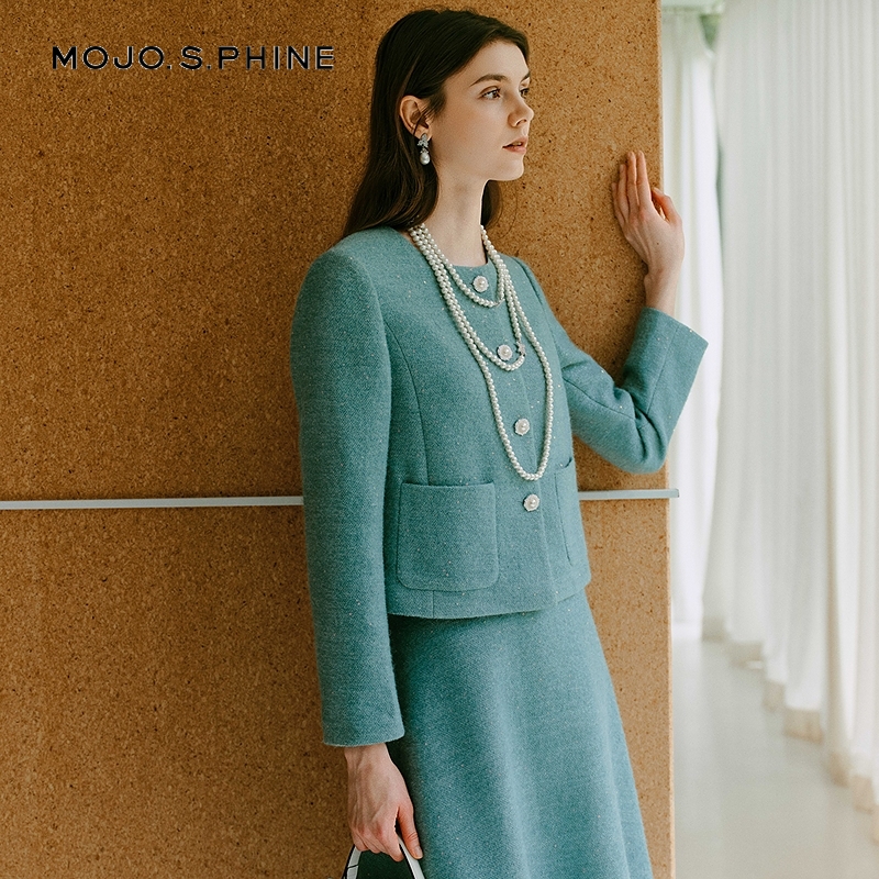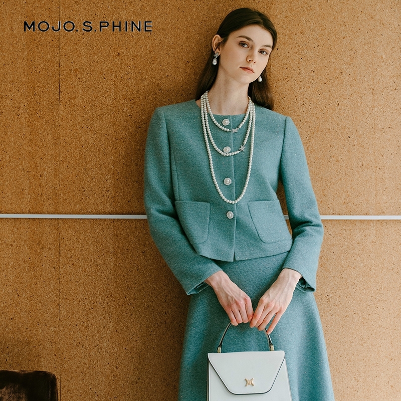 您的位置: MOJO莫佐2025新法式气质小香风半身裙薄荷绿高腰A字半裙