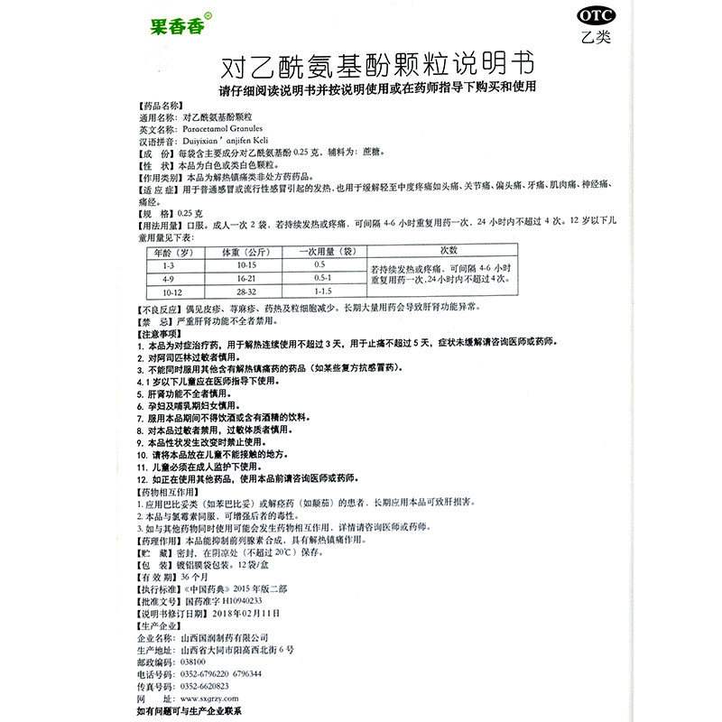 对乙酰氨基酚颗粒12袋对乙氨基酚颗粒发热头痛神经痛牙痛