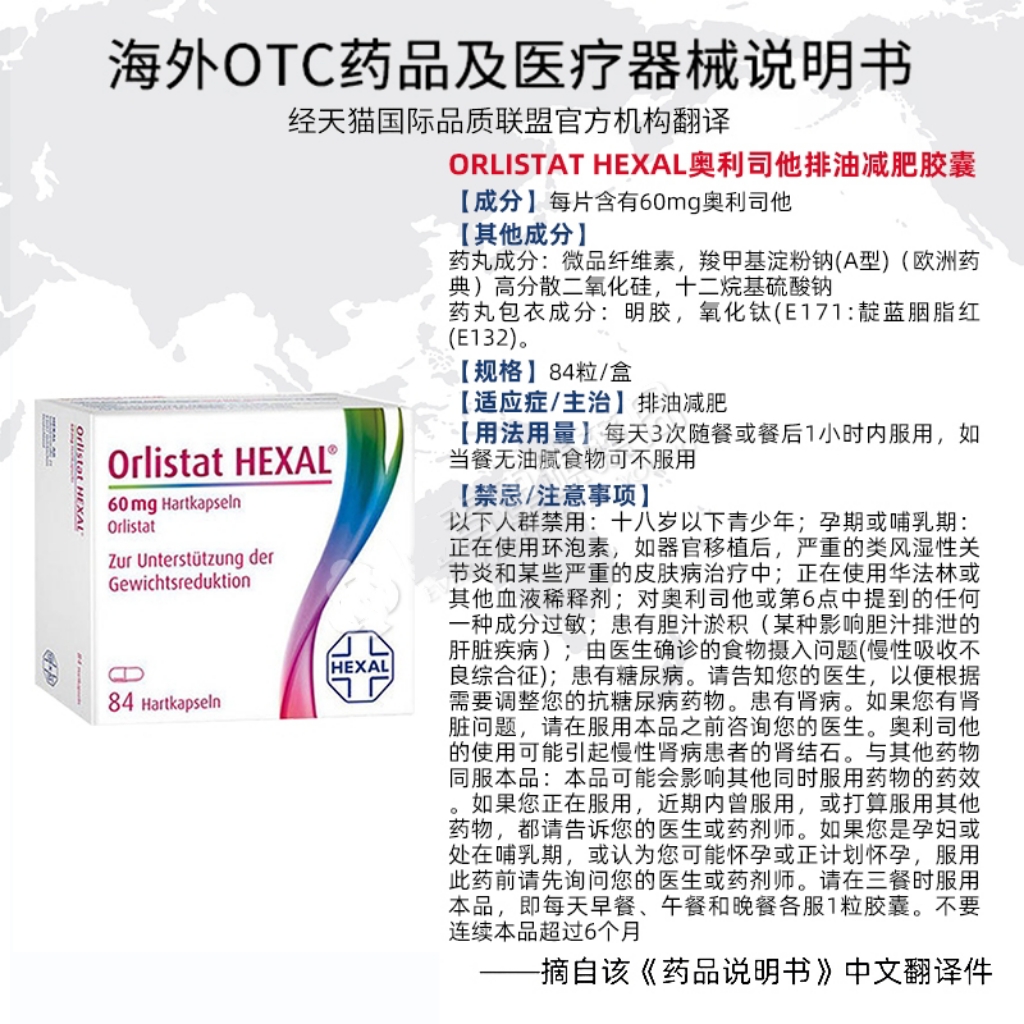 淘宝天猫德国Orlistat奥利司他胶囊阻油脂减肥瘦身控制食欲排油丸进口正品优惠券折扣价格–彩云间