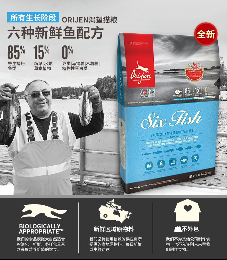 淘宝天猫现货 授权店正品Orijen渴望爱猫鸡肉/室内减肥/六种鱼全猫粮5.4kg优惠券折扣价格–彩云间