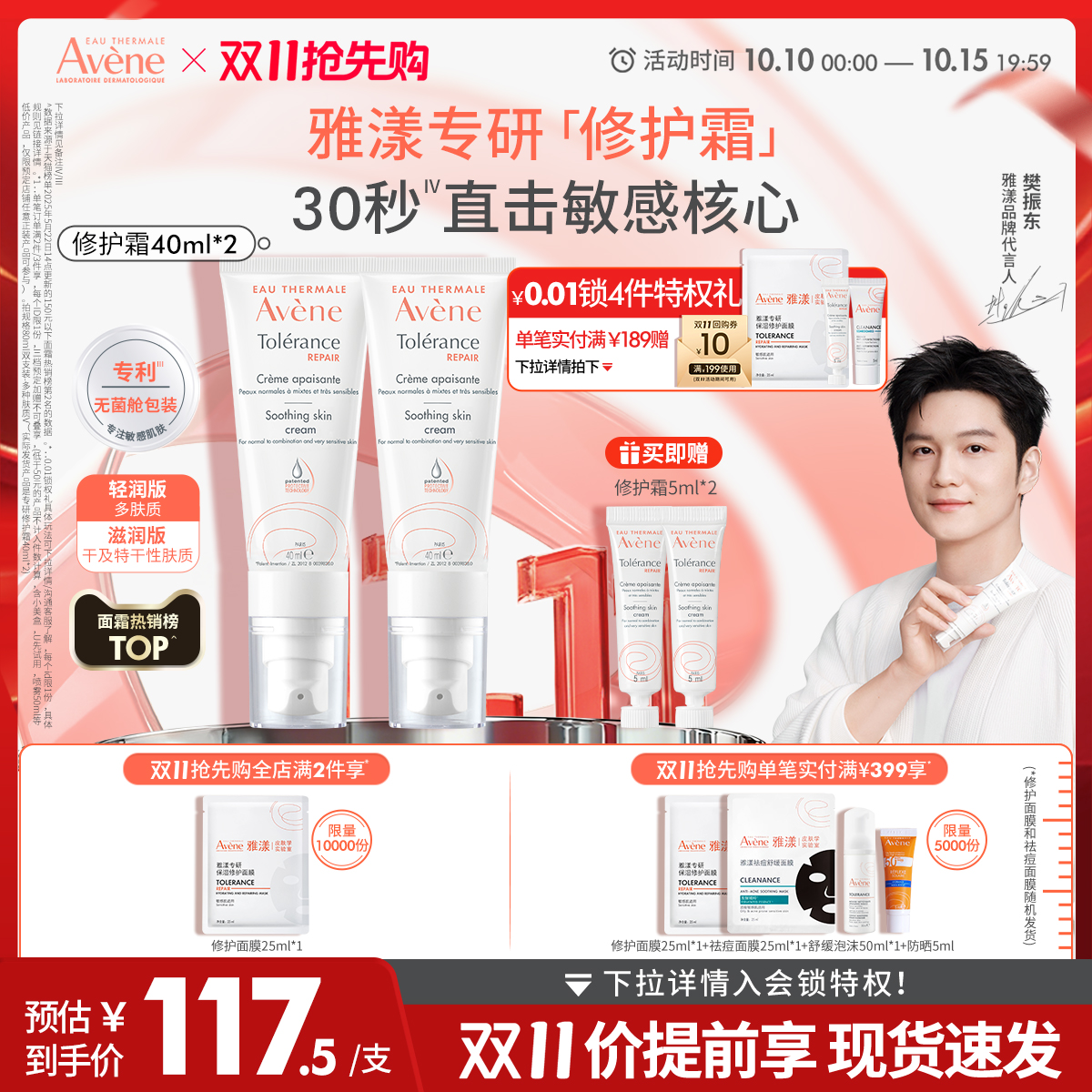 淘宝天猫【双11抢先加购】雅漾专研修护霜舒缓褪泛红面霜敏感肌补水保湿霜优惠券折扣价格–彩云间