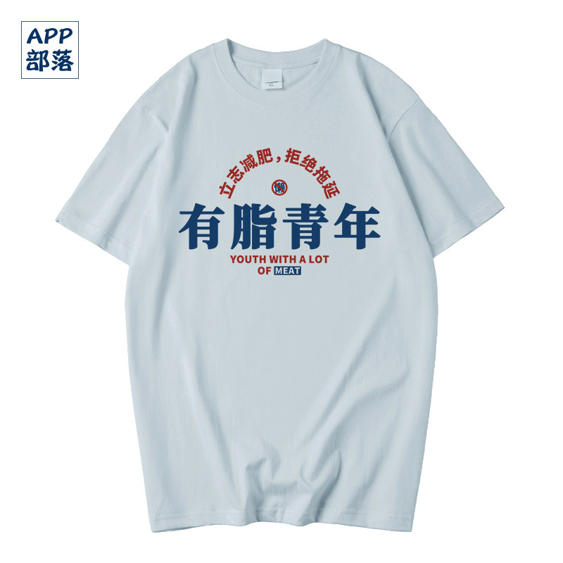 您的位置: 国潮创意个性文字男女短袖t恤有脂青年立志减肥拒绝拖延纯棉体恤
