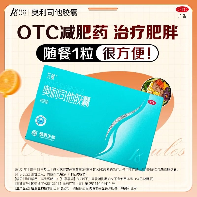 艾丽奥利司他胶囊瘦身排油男女减肥抗肥胖减脂otc官方旗舰店正品