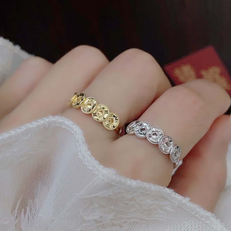 您的位置: 足银999纯银碎冰冰五帝钱币戒指女爆闪钱币指环国风新中式女礼物