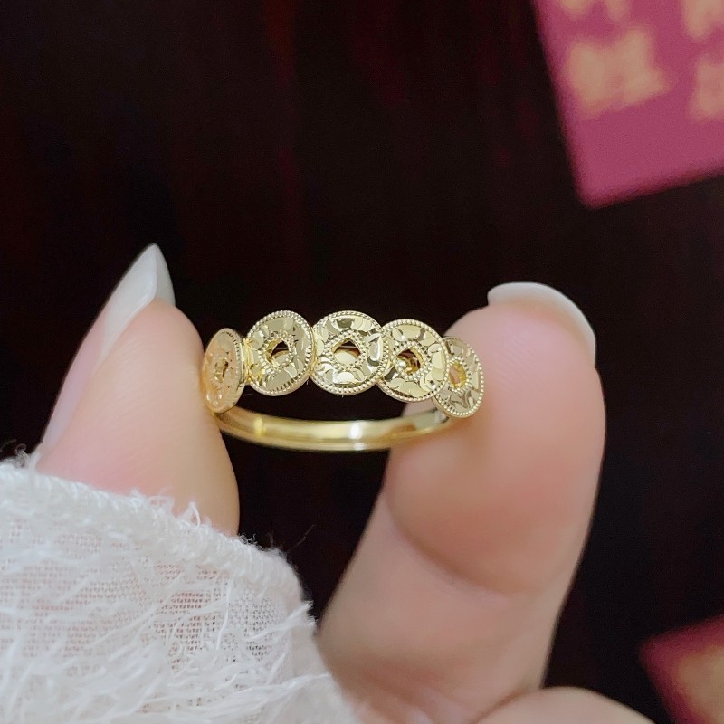 足银999纯银碎冰冰五帝钱币戒指女爆闪钱币指环国风新中式女礼物