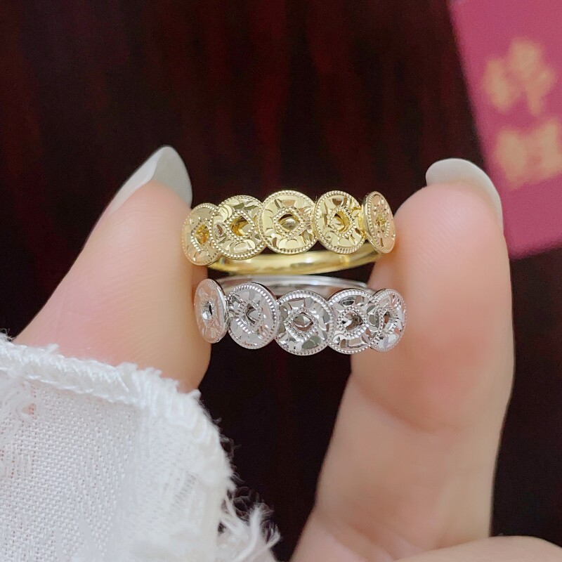 淘宝天猫足银999纯银碎冰冰五帝钱币戒指女爆闪钱币指环国风新中式女礼物优惠券折扣价格–彩云间
