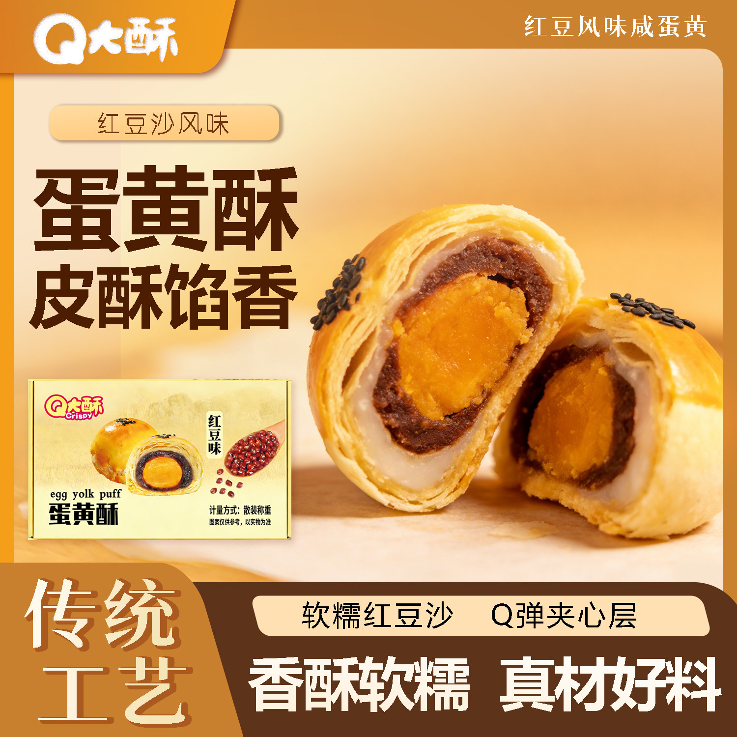 > Q大酥蛋黄酥蛋黄夹心雪媚娘独立包装休闲传统手工酥饼宿舍零食