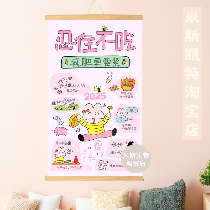 淘宝天猫减肥海报小红书手绘风创意学生寝室海报自律打卡激励挂画送人礼物优惠券折扣价格–彩云间