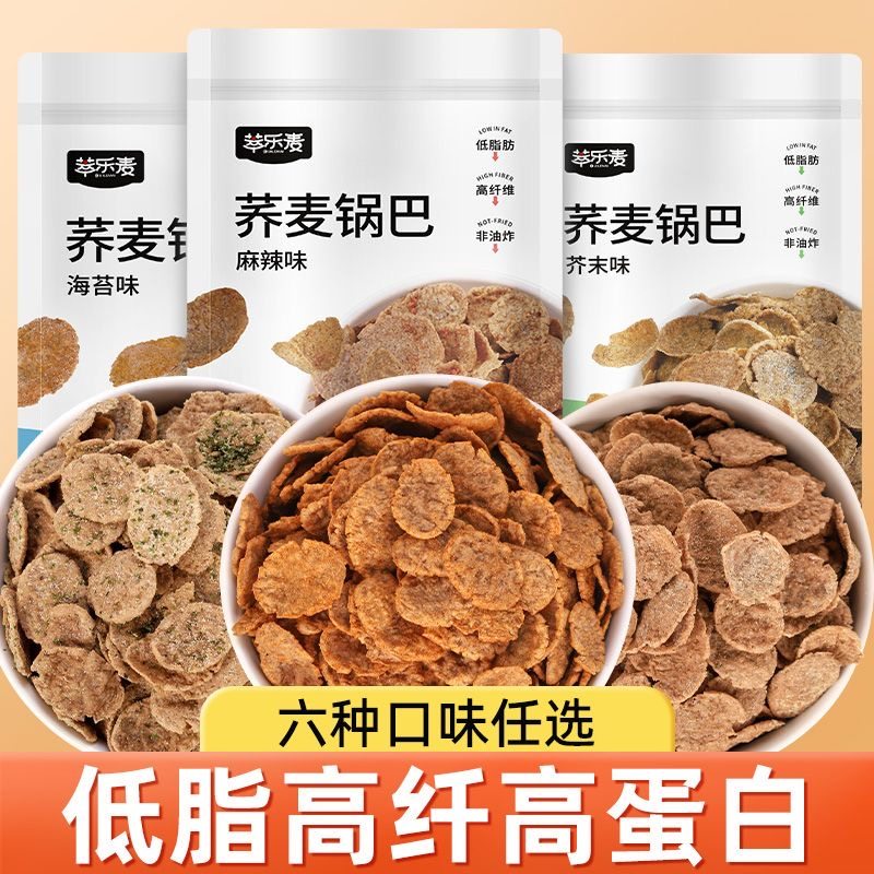 减肥解馋小零食荞麦脆锅巴粗粮休闲低脂非油炸无糖即食苦荞片营养高膳食纤维高蛋白低热量自律人士常备早晚餐搭配食用契合健康