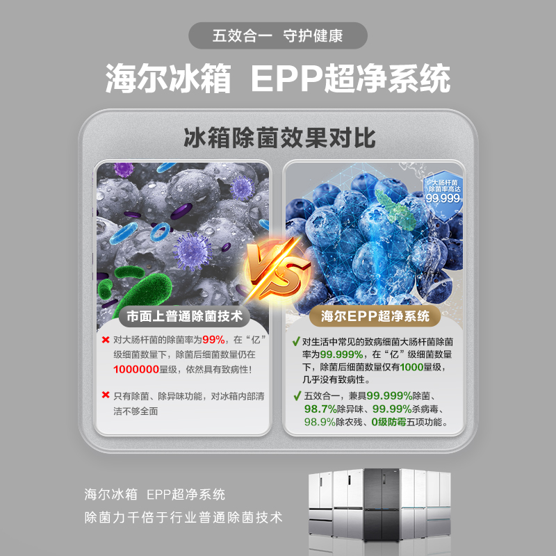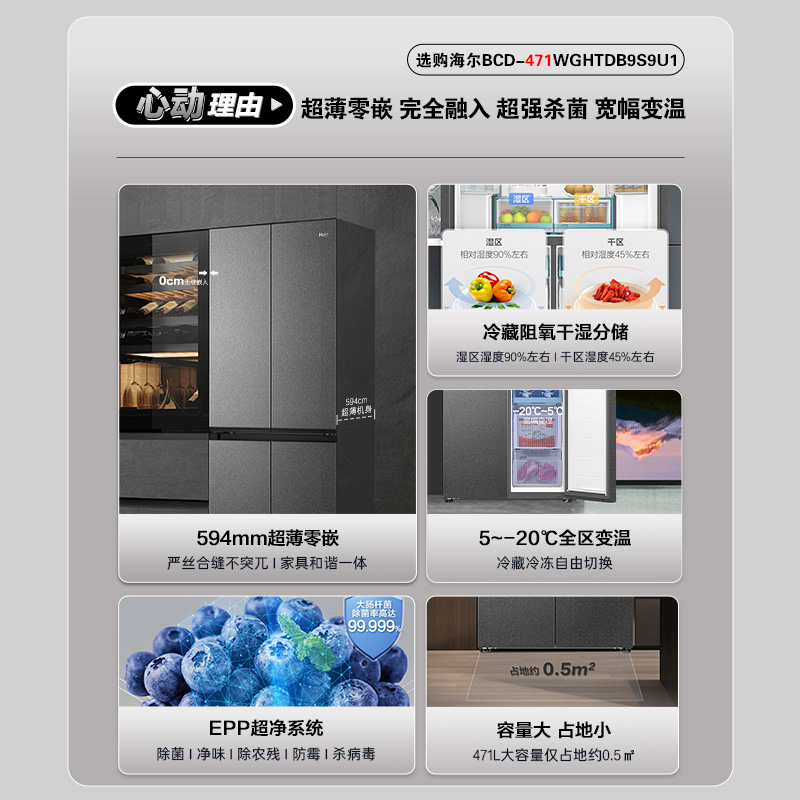【国补20%】471L大空间,一次收纳全家两周食材,湿区锁水,果蔬新鲜7天堪比第1天,干区干爽,珍品干货9个月营养如初,EPP超净系统,除菌、除异味、除病毒、降农残、防霉菌五效合一。