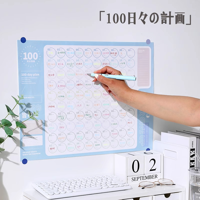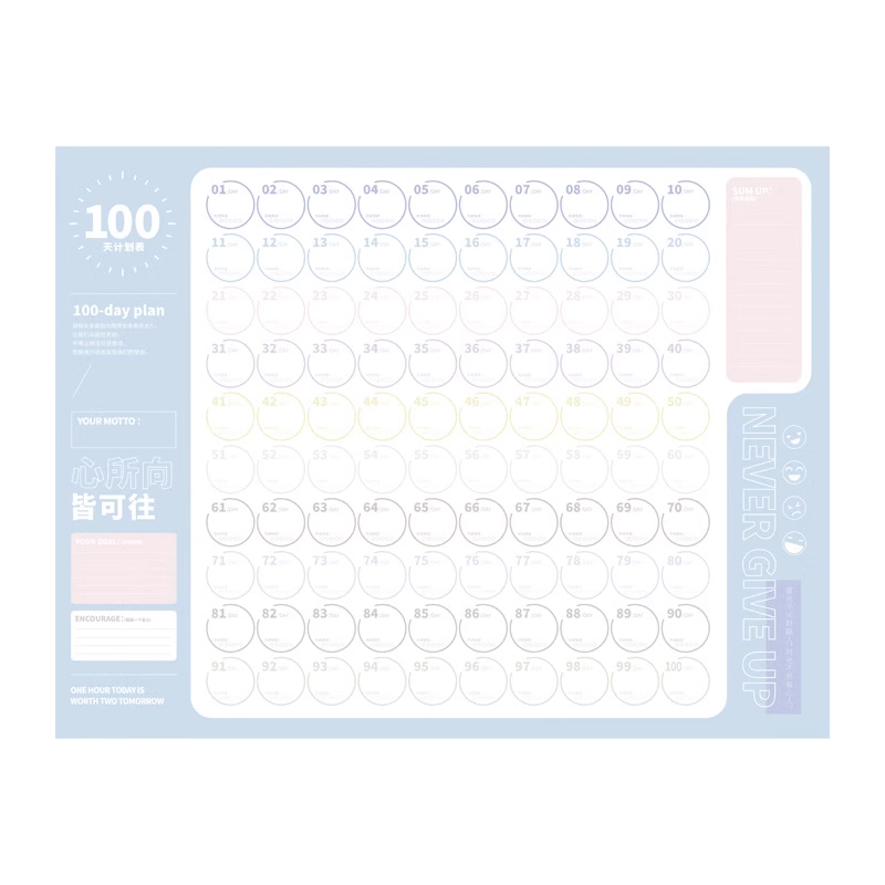 100天计划表记录表减肥瘦身励志墙贴习惯养成儿童成长自律打卡器