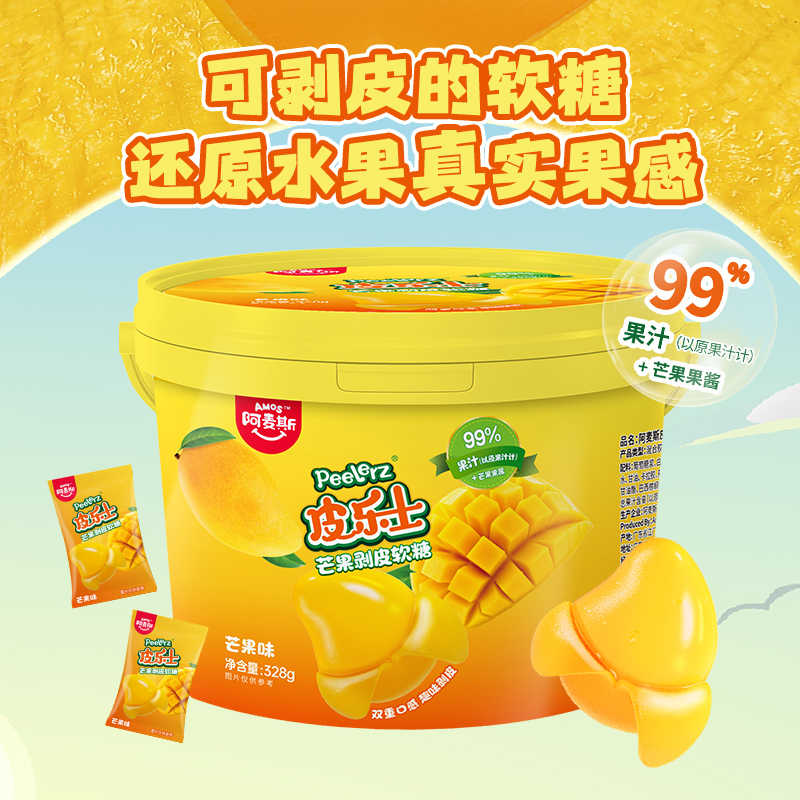 Amos阿麦斯4d水果果汁积木软糖橡皮糖剥皮糖独角兽IP造型软糖