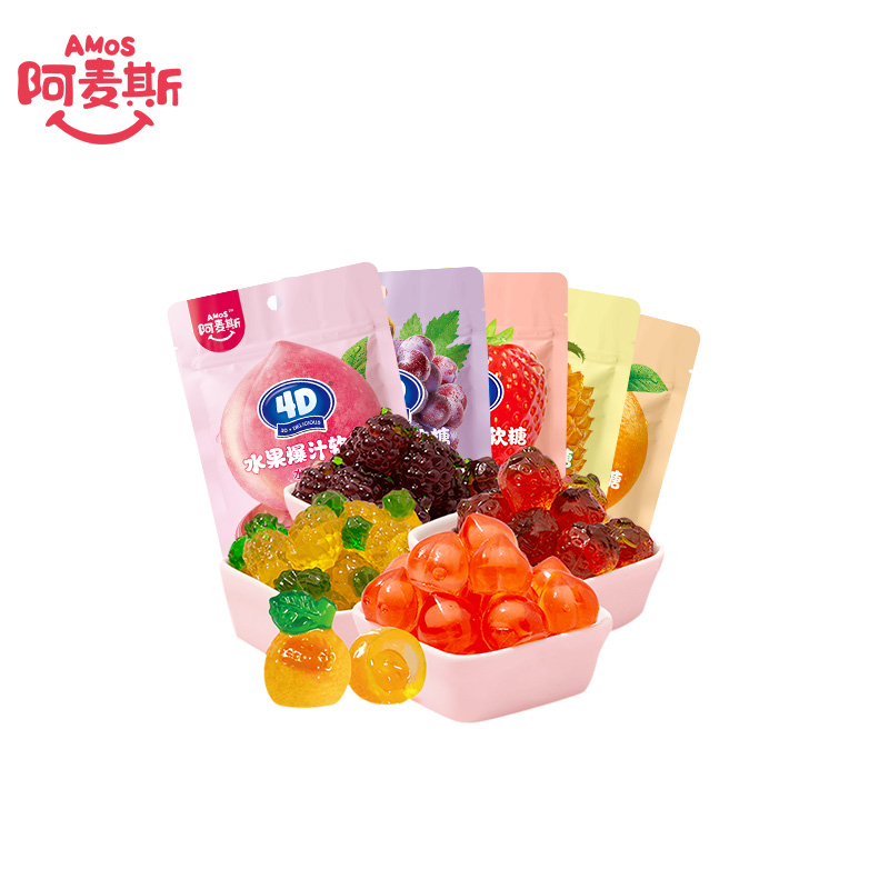 阿麦斯4d果味软糖 爆浆爆汁水果果汁夹心软糖65g零食橡皮糖QQ糖果