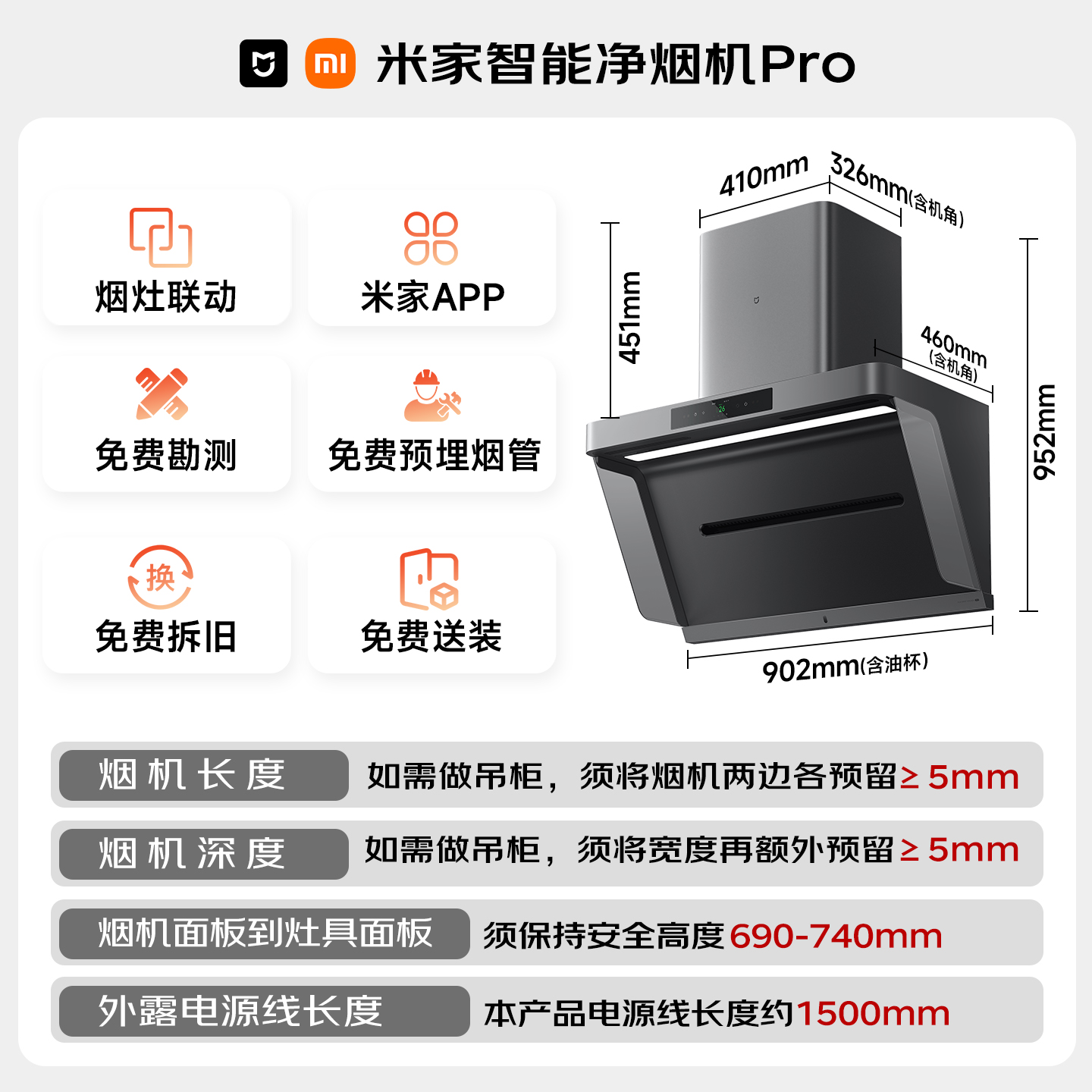> 【新旗舰】小米官方米家智能净烟机Pro厨房家用静音大吸力油烟机