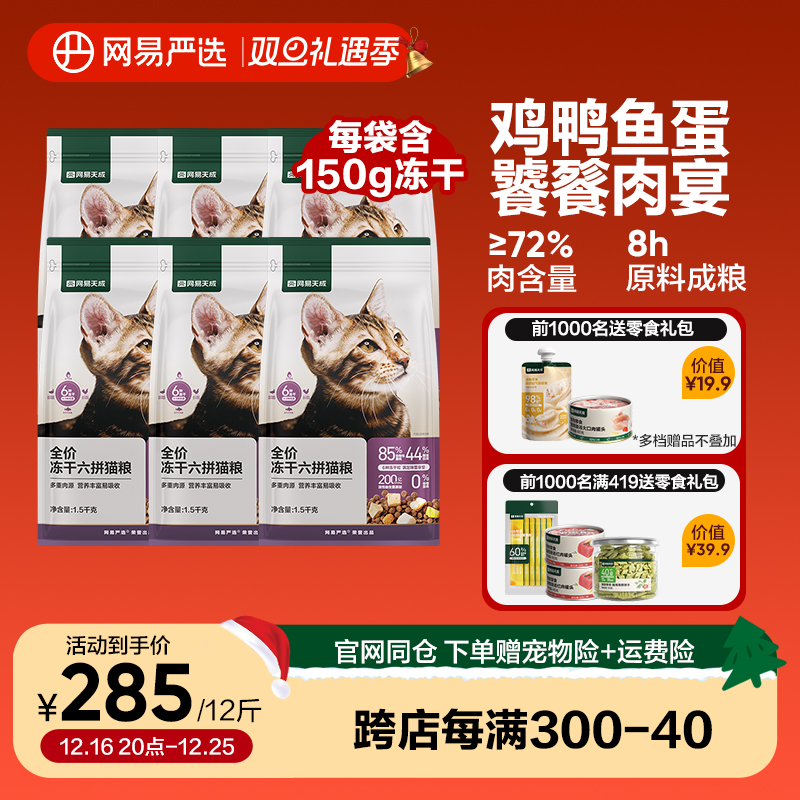 淘宝天猫网易严选六拼冻干猫粮2kg幼猫成猫咪全价无谷鲜肉粮5袋添加益生菌优惠券折扣价格–彩云间