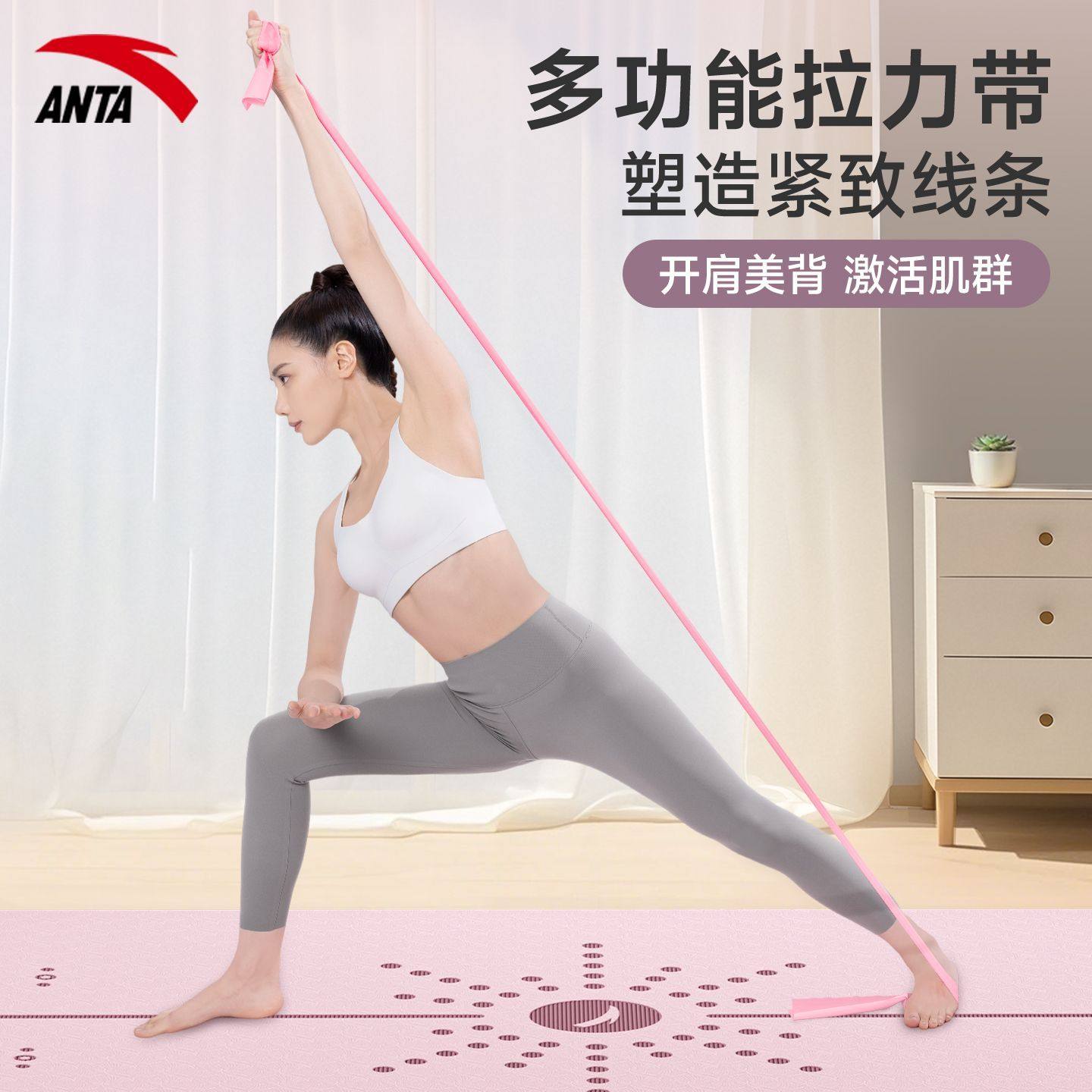 安踏瑜伽拉力带减肥开肩美背女健身弹力带背部力量学生训练阻力带