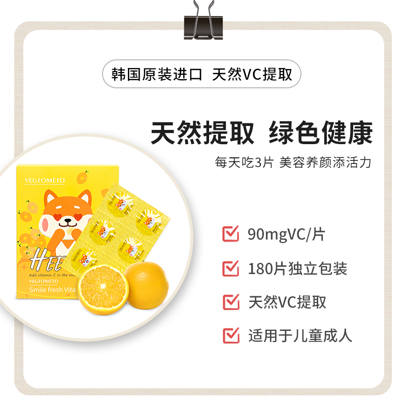 韩国维格美成人儿童天然维生素C咀嚼片水果味VC片独立包180片