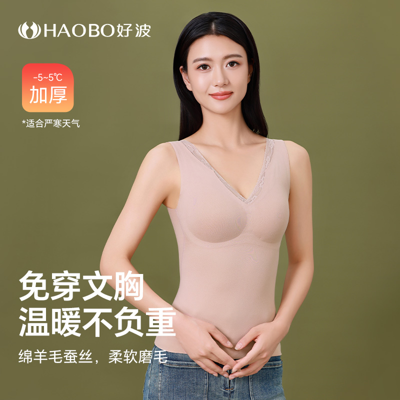 您的位置: 好波保暖背心带胸垫打底衫女2024秋冬免穿文胸性感V领内衣HT2419