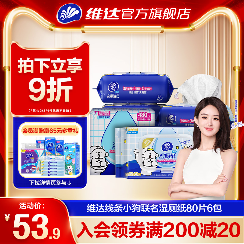 淘宝天猫维达线条小狗湿厕纸家用男女专用卫生私处擦屁股湿厕纸家庭实惠装优惠券折扣价格–彩云间