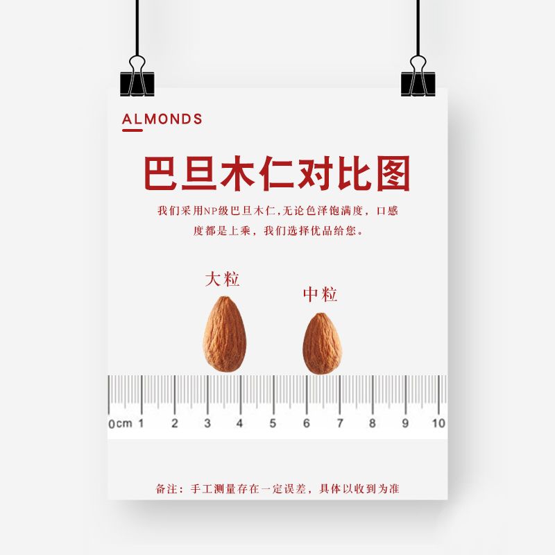 芝参堂巴旦木仁500gNP新货无壳大颗扁桃仁原味孕妇零食坚果100g袋