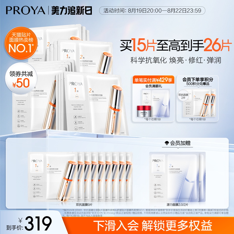 淘宝天猫珀莱雅双抗精华面膜2.0补水保湿抗氧舒缓紧致提亮贴片面膜男女优惠券折扣价格–彩云间